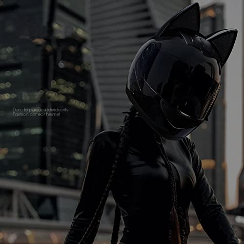 Women's Cat Ear Motorcycle Helmet with Bluetooth (DOT Approved) "Why 1,000+ Riders Choose This Helmet?" ️ DOT Certified Safety Engineered for your protection, our helmet features a durable ABS shell and dual-layer EPS cushioning, passing over 20+ collision tests to ensure maximum safety in every ride. The body of it is black, but it has magenta stripes that swoop up from the sides and up the back to the ears, which are outlined in the same magenta. Adult Personalized Cat Ear Motorcycle Helmet,Men and Women Cool Cat Locomotive Motorcycle Full Face Helmet,DOT/FMVSS-218 Certification Standard,Suitable for All Seasons 4.3 out of 5 stars 280 1 offer from $9288 $ 92 88